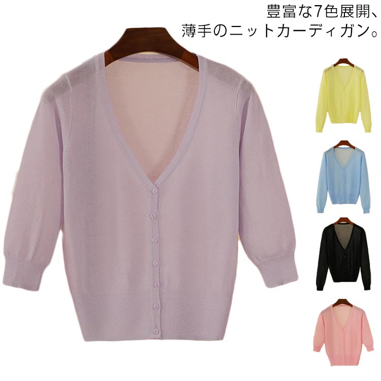 サマーニット レディース ニットカーディガン カーディガン 薄手ニット 無地 Vネック 七分袖 長袖 羽織 肩掛け お洒落 カジュアル シンプル ボタン付き 春夏 薄地 軽い 着痩せ シンプル 冷房対策 トップス 春夏 夏新作